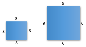 Foto berbentuk persegi panjang dengan ukuran panjang = 2 cm dan lebar = 3 cm. Kemudian diperbesar 2 kali panjang dan 2 kali lebar sebagai berikut: