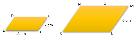 Jajargenjang memiliki sifat sisi-sisi yang berhadapan sama panjang, sehingga AB = CD = 8 cm. Untuk menentukan nilai x dengan menggunakan konsep kesebangunan sebagai berikut: