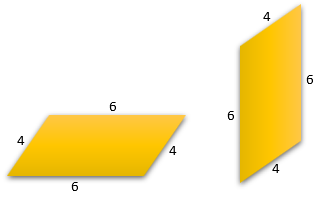 - Panjang sisi-sisinya sama besar antara dua bangun