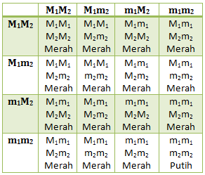 Perbandingan untuk genotif dari F2 = MM: Mm: Mm: mm = 1 : 2 : 1