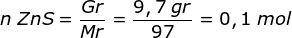 Menentukan ΔH untuk 9,7 gram ZnS