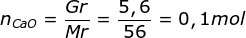 n Ca(OH)2 akan sama dengan nCaO karena koefisiennya sama