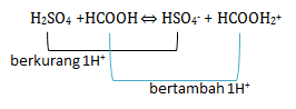HCOOH bertambah 1H+ menjadi HCOOH2+ sehingga HCOOH bersifat basa sedangkan HCOOH2+ akan bersifat asam atau menjadi asam konjugasi