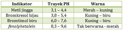 Diketahui trayek perubahan warna indikator sebagai berikut:
