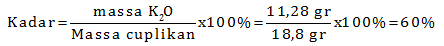 Gr K2O = n x Mr = 0,12 x 94 = 11,28 gr