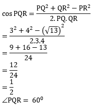 Berlaku aturan kosinus, perhatikan DPQR sebagai berikut:
