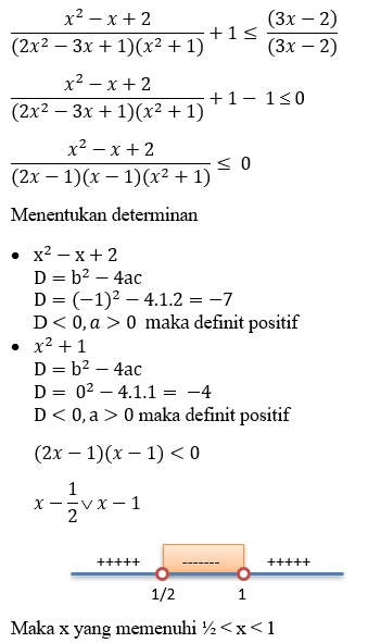 - 1/2 < x < 2/3 atau 2/3 < x < 1