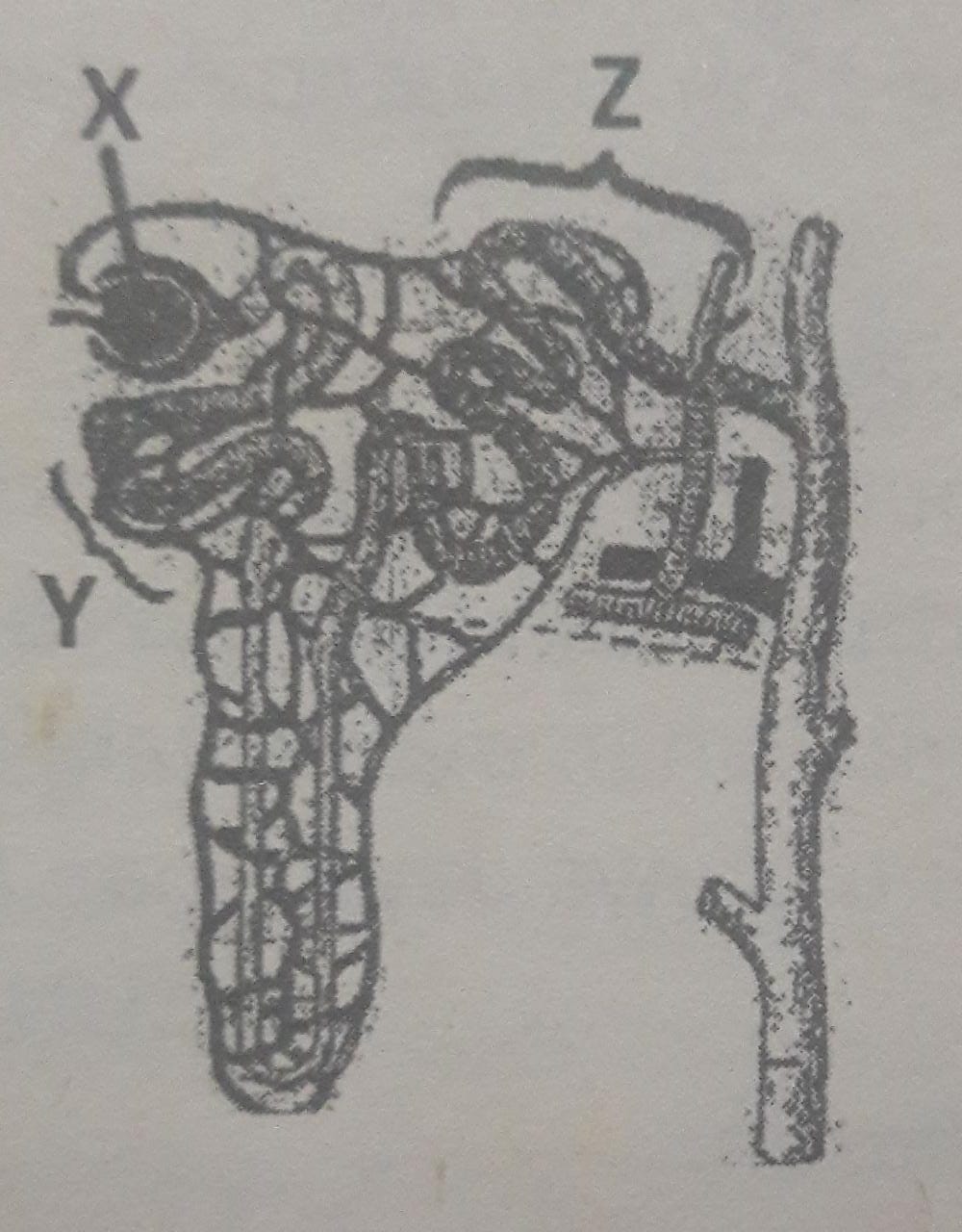 Bagian X yang dimaksud gambar adalah glomerulus. Di dalam glomerulus terjadi proses penyaringan darah untuk menghasilkan urine primer yang kemudian lanjut ke tubulus kortortus proksimal, lengkung henle dan tubulus kontortus distal yang terjadi proses reabsorpsi menghasilkan urea sekunder. Urea sekunder di tubulus kontortus distal akan mengalami augmentasi menjadi urea sebenarnya