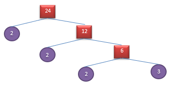 Faktorisasi prima dari 24 = 2 x 2 x 2 x 3 = 22 x 3