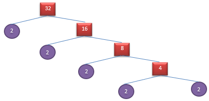 Faktorisasi prima dari 32 = 2 x 2 x 2 x 2 x 2 = 25