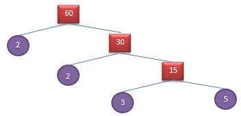 Faktorisasi prima dari 60 = 2 x 2 x 3 x 5 = 22 x 3 x 5