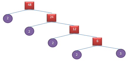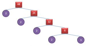Faktorisasi prima dari 48 = 2 x 2 x 2 x 2 x 3 = 24 x 3