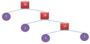Faktorisasi prima dari 56 = 2 x 2 x 2 x 7 = 23 x 7