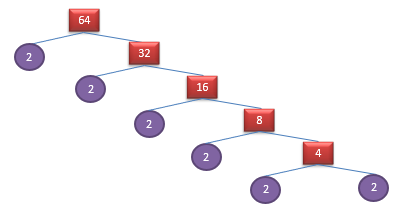 Faktorisasi prima dari 64 = 2 x 2 x 2 x 2 x 2 x 2 = 26