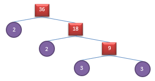 Faktorisasi prima dari 36 = 2 x 2 x 3 x 3 = 22 x 32